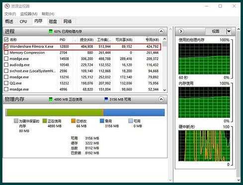 而视频处理软件则更为明显了,当运行Wondershare Filmora时,软件打开专用内存占用达到达到了41M以上,