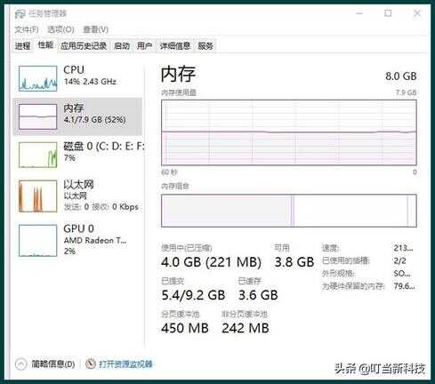 当一个程序启动后,CPU会根据时钟信号,控制器会从内存中读取指令和数据。对于普通办公电脑用户来说,内存使用的容量并不大,大家可以看看我的电脑在办公时内存占用情况。