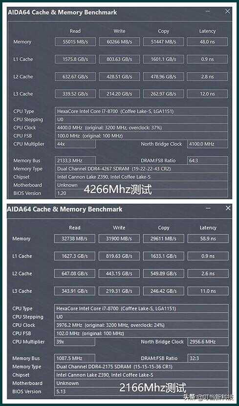 内存超频到4266MHz;读5.5GB/s,写6GB/s,延时48ns。