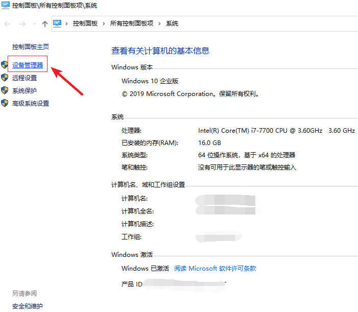 2、在进入系统界面后,在左侧找到设备管理器,点击然后进入设备管理器界面。
