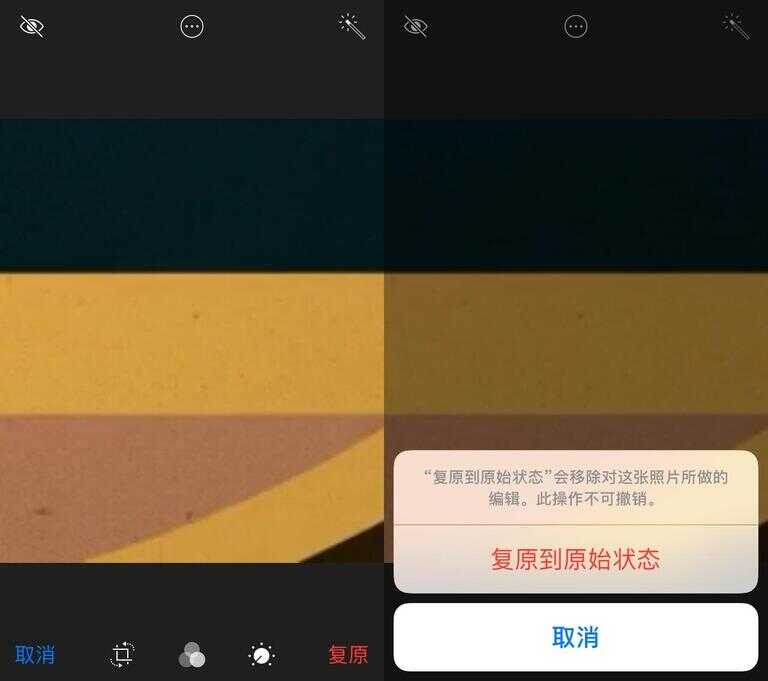 在裁剪过程中,苹果会自动为你保留原始照片,所以没有人会在第一眼发现这张照片的端倪。而对你来说,如果想要查看这张照片,只需要「复原」便可以让照片回到原始状态。