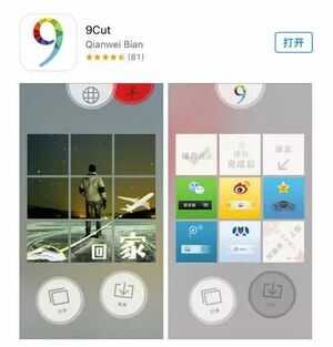 2、安装 9cut九宫格切图APP后,点击下方的打开按钮,然后选中想要切成九宫图的图片,之后就变成九宫格新式了。