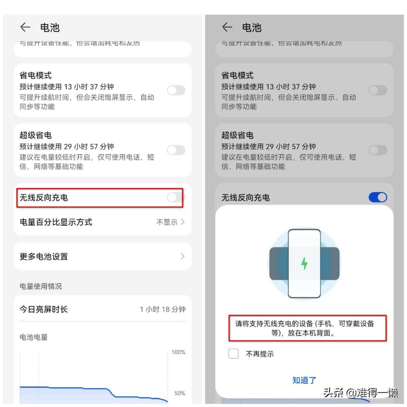 开启无线反向充电,可以给支持无线充电的设备,放在手机背面进行充电。这个功能仅限个别机型。如果在电池设置里面不显示,说明不支持这个功能。