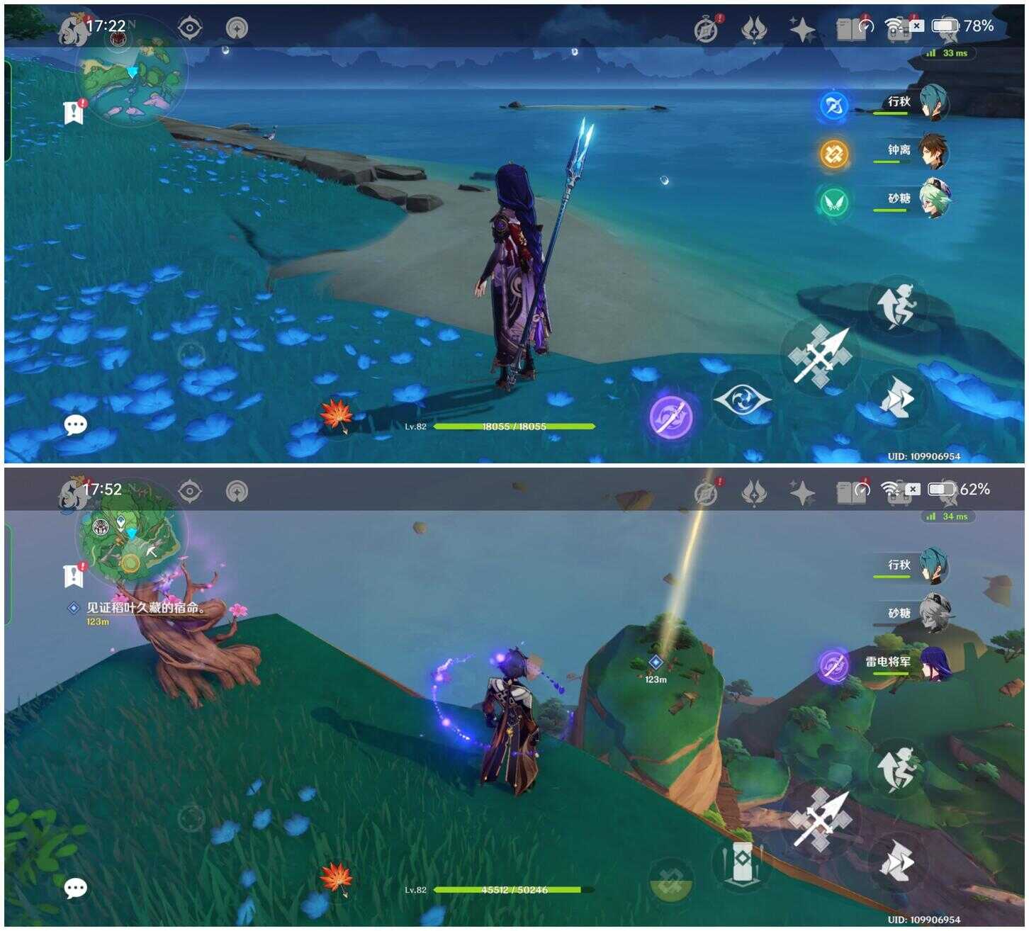 原神作为当前手机游戏性能的天花板,对于骁龙870来讲是稍有压力的,尤其是加入你之前使用的一直是今年的销量8 Gen1或者天玑9000旗舰机的话,在进行深渊或者大范围群体技能释放以及快速人物切换的时候,还是能明显地感觉到游戏画面会卡,但这时候还是回归到那个关键点上,想一下它不足2000元的价格,也是能接受了。