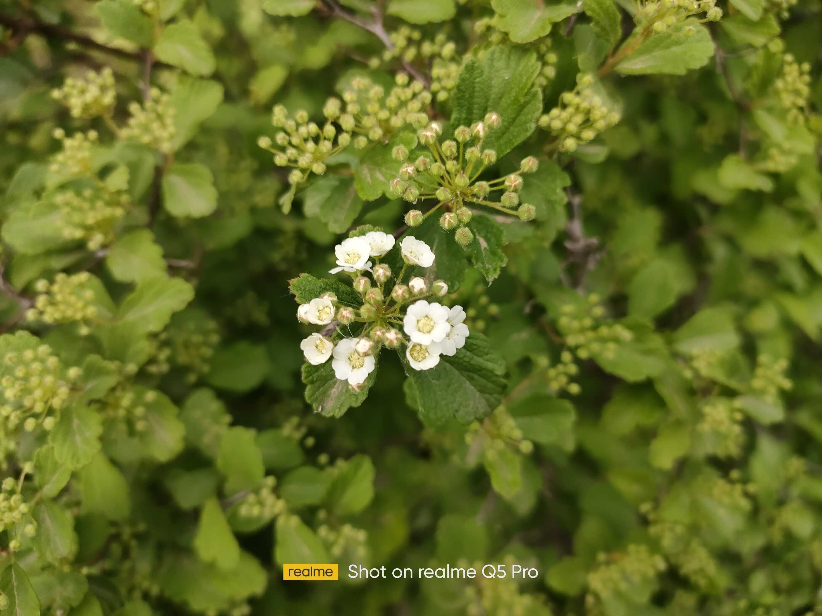 有意思的是,哪怕是阴天,realme Q5 Pro也把花朵和绿植拍的非常有生机感,尤其是白色的花卉样张,周围背景中的绿叶在色彩的饱和度上也没有过高,很好的把一朵白色的不知名小花衬托的更为凸显。