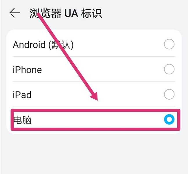(5)最后在浏览器UA标识页面里面,点击最下面的“电脑”选项即可。