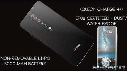 诺基亚新机王者归来,曝光的设计来看,这部诺基亚新机的机身材质方面看搭配的是玻璃材质设计其机身。这部诺基亚新机搭配的玻璃材质是康尼大猩猩玻璃6材质,这种材质是一种高度防滑,防摔的材质。那么这部诺基亚新机在无线充电技术上看,还是支持的,这部诺基亚新机在续航方面看搭配的是5000毫安的超大电池容量搭配的电量,这部诺基亚新机还支持IP68的防水,防尘技术。在QC4.0的快充技术上,能够在很短的时间内将其电量快速充满,完全不用担心其续航问题。