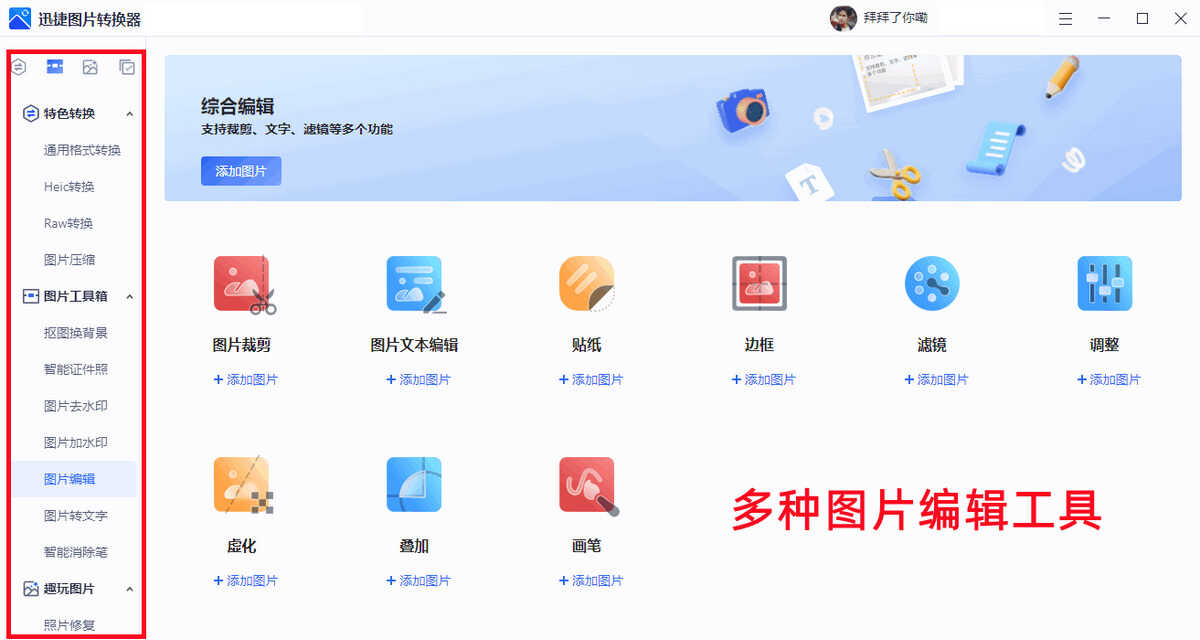 原本我就只是冲着想找一款“图片格式”转换器,但却没想到实际上手后。发现它在“图片编辑”方面,不仅功能类型多样,而且用途也十分广泛。