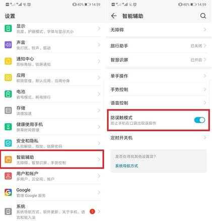 如果上面的方法没有用的话,还可以通过打开手机【设置】-【智能辅助】-将【防误触模式】关闭即可。