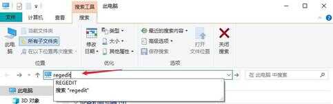 步骤1:此电脑搜索框中输入regedit直接打开注册表编辑器;