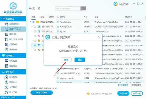 步骤4:将确认无误的文件勾选好,点击“立即恢复”,将文件暂时保存到其它盘中,点击查看即可查看恢复好的文件。