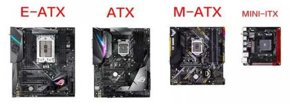 主板主要有四种常见版型:E-ATX加强型、ATX标准型、M-ATX紧凑型、MINI-ITX迷你型。