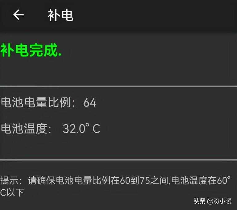 从上述中可以看出,即使我们的手机由于电池损耗或者环境温度太低导致了虚电现象,这个补电功能也不会对电池电量进行校准。