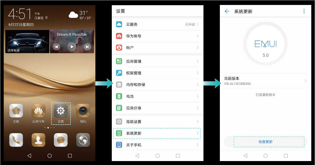 使用方式:点击【设置】-【系统】-【系统更新】-【检测更新】,当我们手机处于联网状态时,系统会检测是否有新版本,如果有,可以通过点击【新版本】下载【软件升级包】然后我们根据提示进行版本的更新升级。