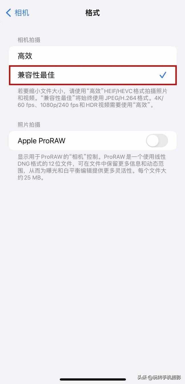 继续找到「相机」,点击「格式」,选择「兼容性最佳」。拍摄照片将以JPEG格式保存,空间压缩不会太严重。