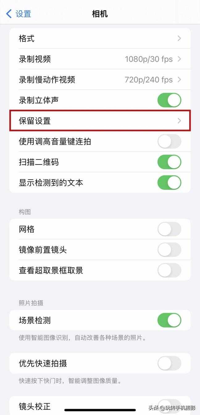 下一步点击「保留设置」,可以把所有模式都打开。其中,「曝光调整」的开启,可以让我们在拍摄时对画面曝光度进行调整,避免画面细节的丢失。