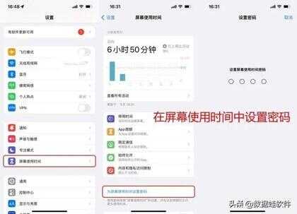 在【设置】中选择【屏幕使用时间】,点击蓝色字体的【为屏幕使用时间设置密码】,相当于为你的相册设置一个访问密码。