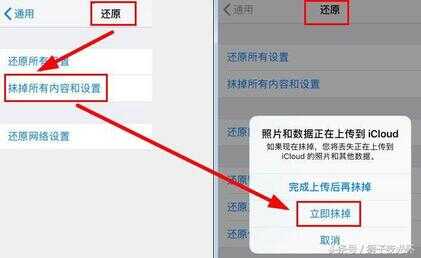 2、点击“抹掉所有内容和设置”-“立即抹掉”,等待几十秒就恢复到出厂设置了。