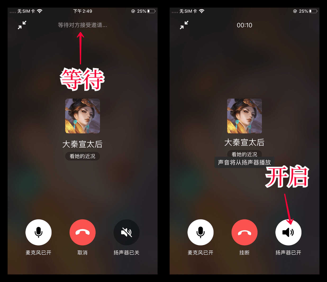 等待对方接受通话邀请,当对方接听后,直接点击右下角的“扬声器”,进行免提通话,这样声音就会外放,听得更清楚。