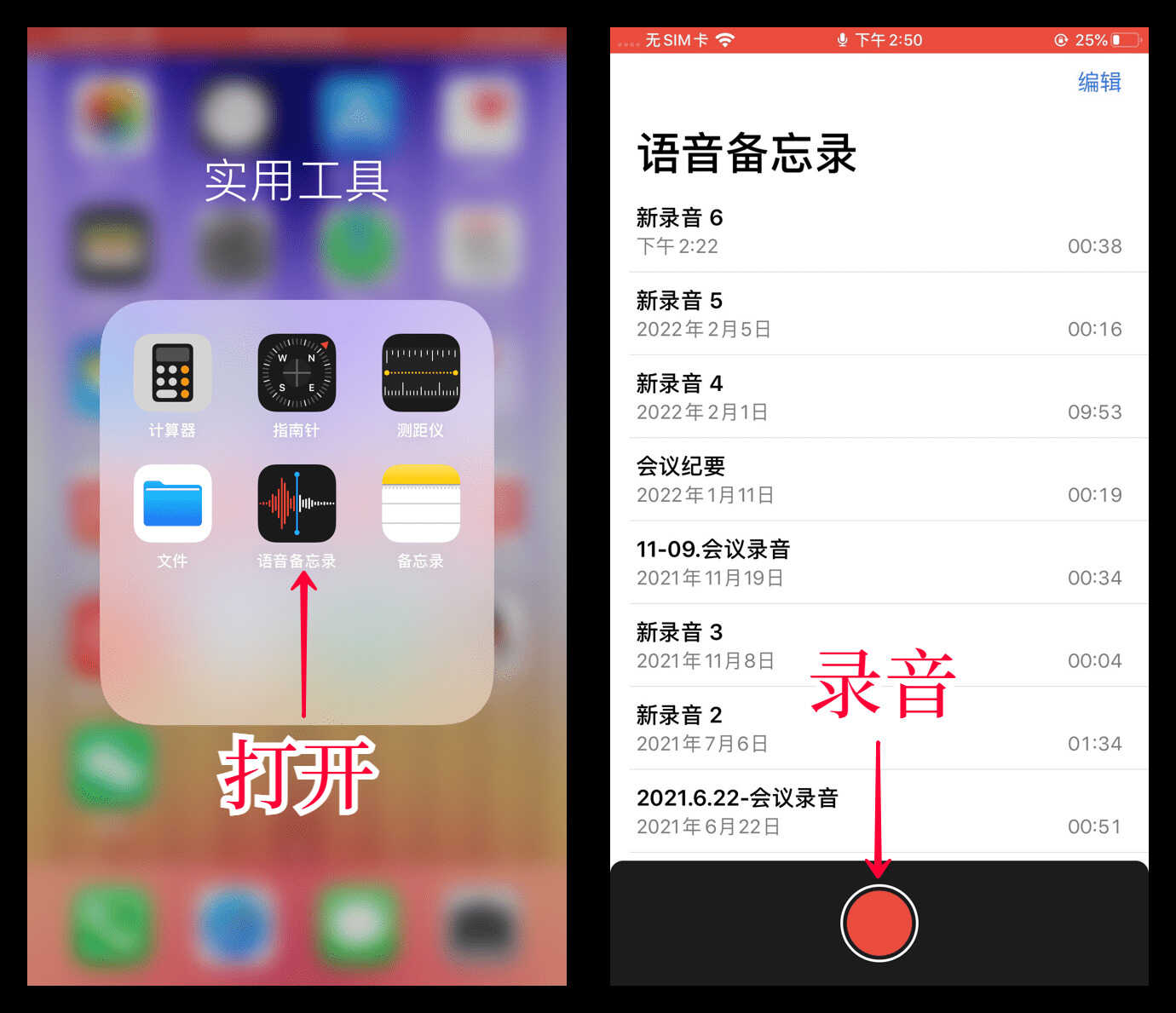 方法一、语音备忘录(iOS)