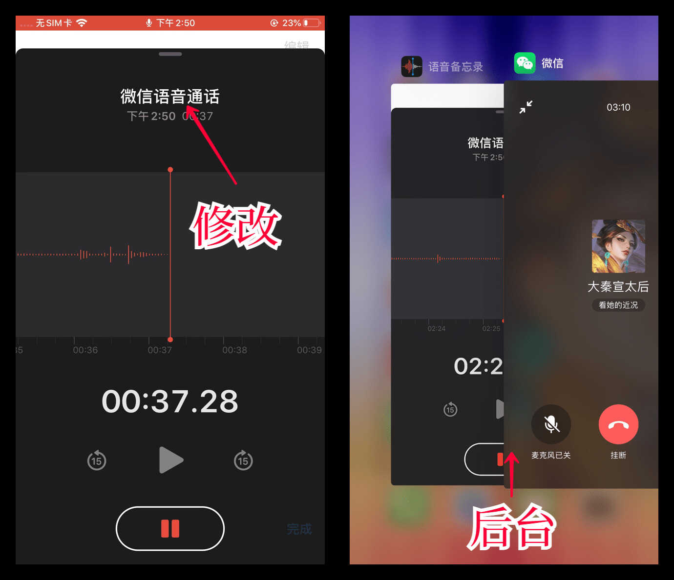 在录音的同时,我们可以顺手修改一下标题,方便下次更快找到音频文件。即便是切换到微信语音通话后台,录音也不会终止。