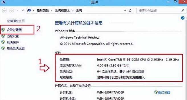 2、可以直观的查看到处理器(CPU)、内存等部分核心硬件信息,如下图所示:
