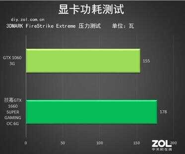而在显卡功耗方面,技嘉 GTX 1660S显卡的功耗比起GTX 1060 3GB显卡略高,不过单从FSE压力测试中得出的成绩看仅比GTX 1060 3GB显卡高出23W,整机功耗为178W,而GTX 1060 3GB的功耗为155W。