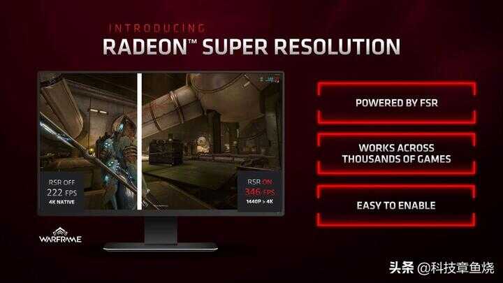 除了硬件架构上的提升外,AMD Radeon还具有多种特色技术,帮助你在游戏中提高帧率,取得战局先机。比如说AMD超级分辨率锐画技术,在降低渲染分辨率从而提升帧率的同时,还能通过多种算法令画面保留细节,清晰度和性能缺一不可。