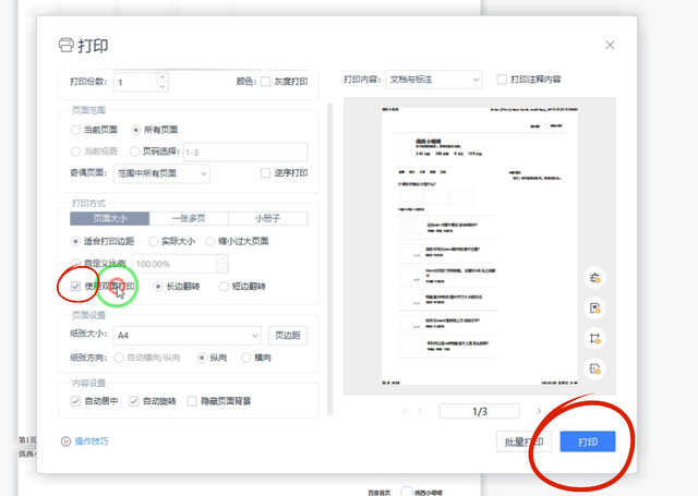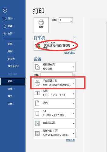 3、设置好打印机和“手动双面打印”,点击“打印”就OK了