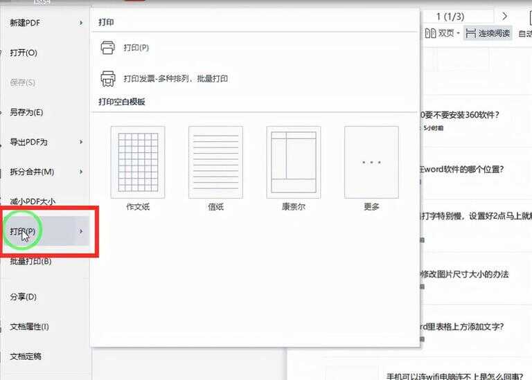 1、打开PDF文档,单击文件菜单-打印(也可以使用快捷键:CTRL+P)