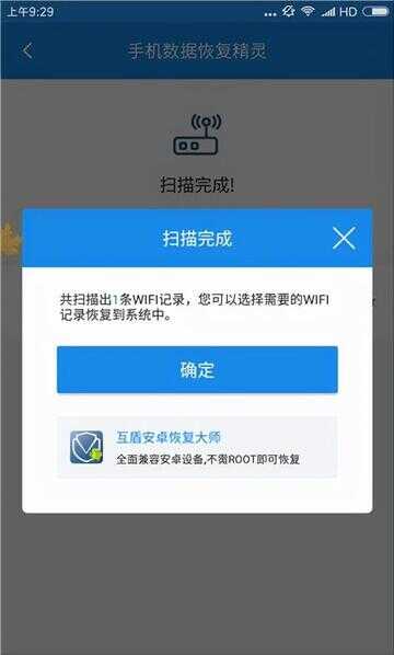 点击WiFi密码查看,进入扫描状态,经过一定时间的扫描,App会显示出一共扫描出了多少登录过的WiFi账户。