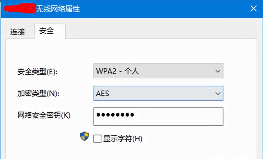 在无线属性当中点击安全,然后点击显示字符就可以看到无线路由器的WiFi密码啦