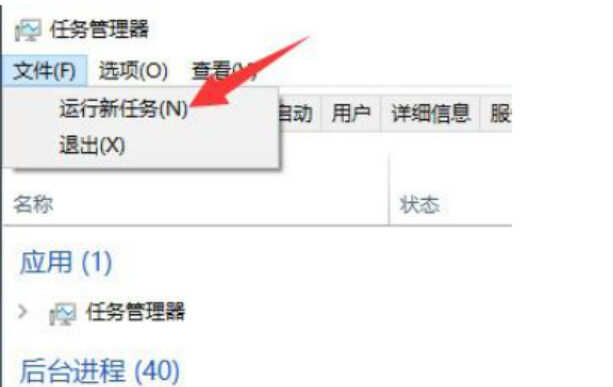 3、当弹出的任务管理器之后,点击文件选项,点击打开运行新任务即可。