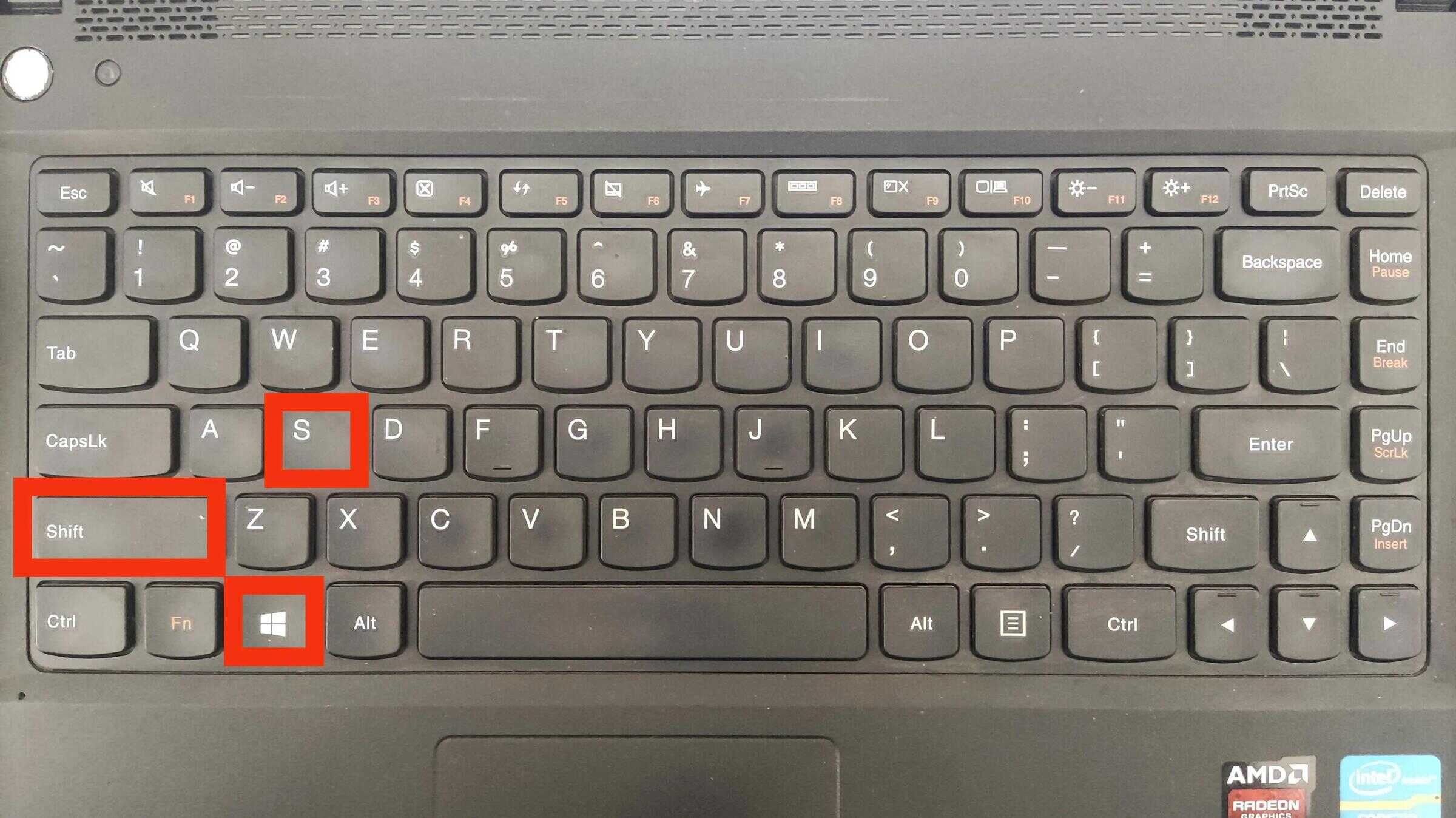 - 台式机键盘按“Win”+“PrintScreen”键;
