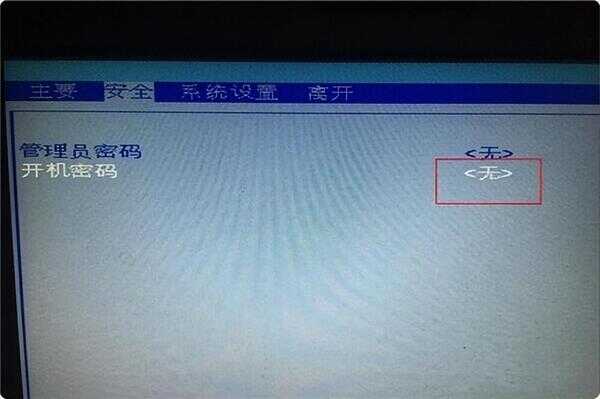 7、 回到原先的bios开机密码选项界面,也可以确认显示无,这就表示开机密码已经取消了,按F10保存设置并退出