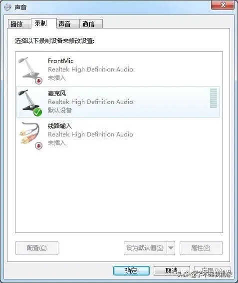 这里可以看到“播放”菜单栏和“录制”菜单栏下的线路插入及麦克风等设备是否插入。