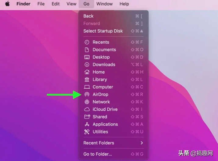 Mac:所有 2012 年及之后发布并运行 OS X Yosemite 或更高版本的 Mac 机型都支持隔空投送。您可以按顺序点击下图中的按钮以确认设备是否兼容隔空投送功能。如果隔空投送(AirDrop)未作为选项列出,则您的 Mac 与该功能不兼容。