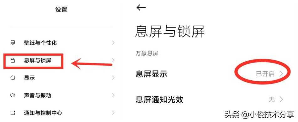 要实现息屏显示时间或者无需按电源键点亮屏幕就能看到时间,首先需要开启息屏显示功能!怎么开启呢?