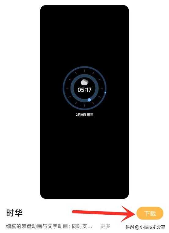 在【动态息屏】中可以选择点击自己喜欢的【息屏显示】效果,点击之后就会进入到【下载安装】页面,我们点击【下载】,等待【下载完成】,直接设置就可以了,此时我们的息屏显示就变成动态的了!