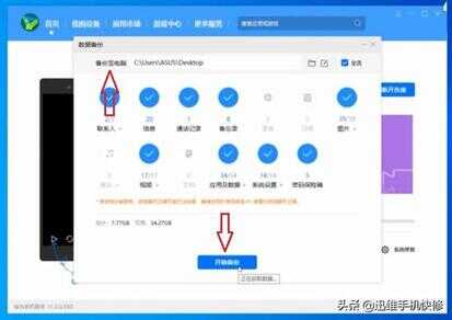 5、 点击【数据备份】,自动获取数据完成后,先修改【备份至电脑】的位置,比如:桌面或D盘。
