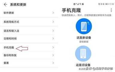 点击设置——系统和更新——手机克隆,点击旧设备就会出现扫描,点击新设备-华为就可以出现一个二维码,用旧手机扫码新手机的二维码,手机就会自动进行数据备份了,这个操作非常方便。