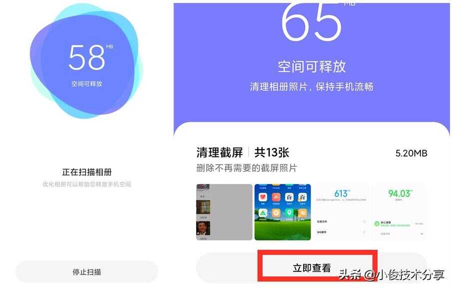 此时就会扫描我们相册空间,等待扫描完成,我们选择【立即查看】