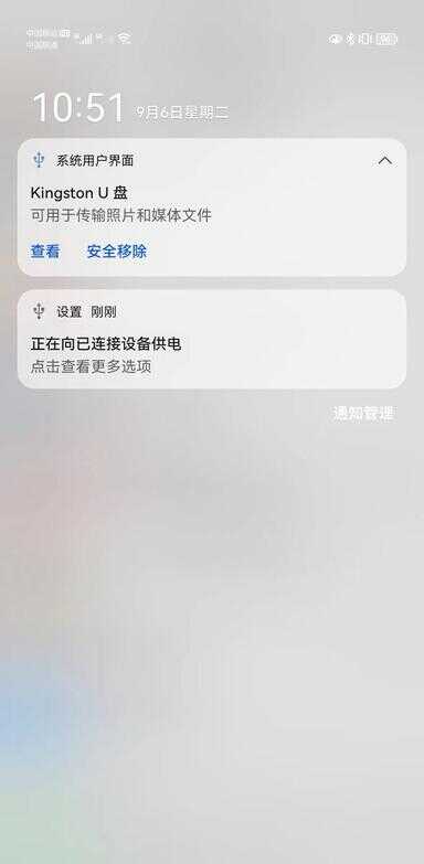 之前下拉华为手机的屏幕菜单会出现U盘的连接提示