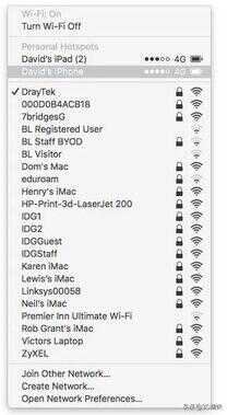 现在,从菜单栏中单击Wi-Fi徽标时可以看到的网络列表中选择iPhone。