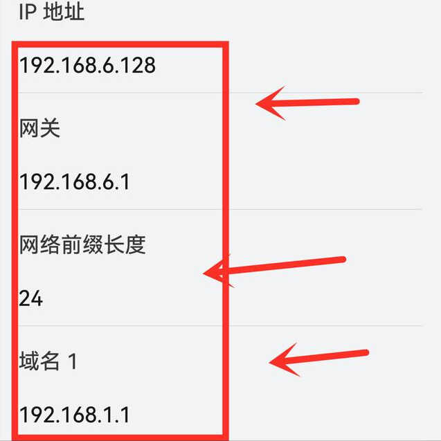 IP选为静态后,IP地址就会显示出来。这时候,我们把域名1更改为8.8.8.8,这个是适应性更广的域名地址,更改为8.8.8.8后,一般情况下,“手机wifi已连接(不可上网)”的问题就能解决。