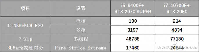 在日常和专业应用方面,就改成i7-10700F优势突出了。除此之外,其实在3DMark的物理性能、CPU性能方面,i7-10700F也是更强的。所以对于追求全能、设计能力的用户来说,i7-10700F+2060的组合就更合适了,在一些“设计师电脑”中也确实常见类似的配置。