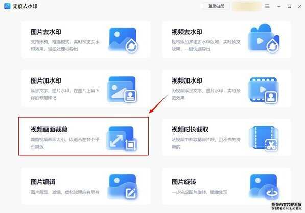 步骤一:今天我会借助“无痕去水印”这款软件,详细教你们怎么把视频裁剪尺寸。首先,我们在打开该软件后,直接点击该界面的【视频画面裁剪】功能。