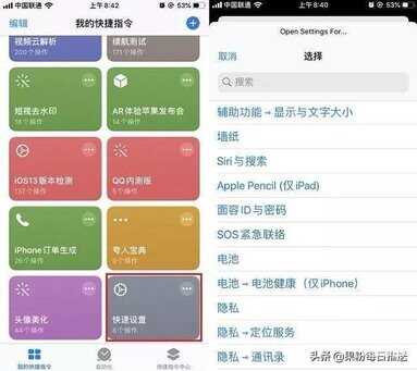快捷指令安装好后,在快捷指令APP的“ 我的快捷指令 ”中,点击运行安装好的“快速设置”快捷指令运行,之后就可以选择进入一键直达的相关设置了,如下图所示。