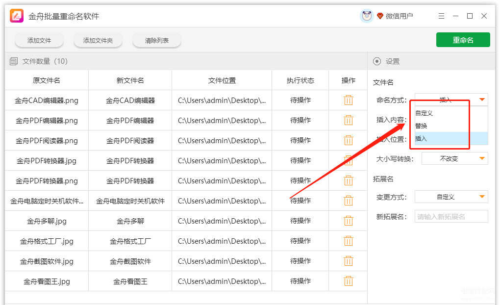 第二步、重命名的方式有以下三种,自定义、替换和插入,结合自己的需要选择就好了;