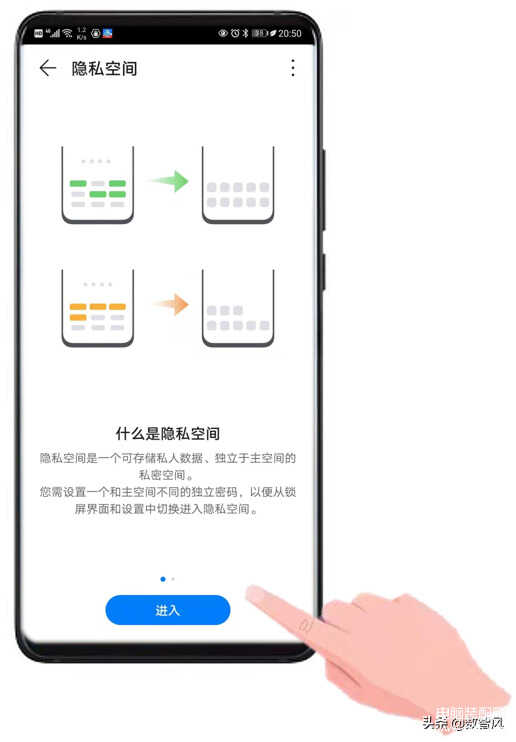 6、设置完后,系统会自动回到隐私空间的入口。点击“进入”按钮,输入刚设置的隐私空间的密码就可以进入到隐私空间了。